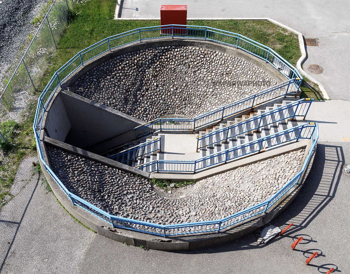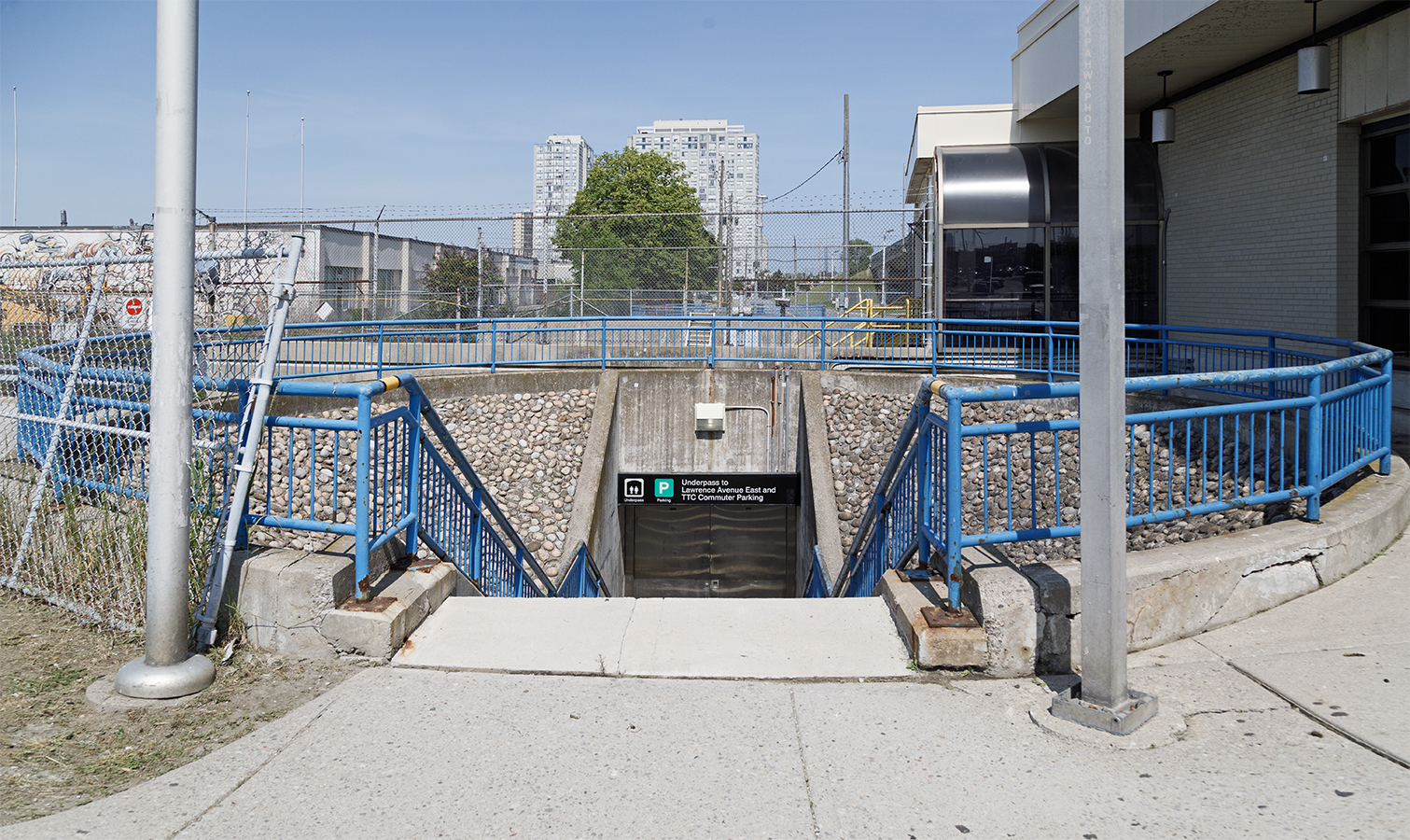 photos 20250618. TTC Line 3 had some interesting entrances like this one at Ellesmere Station – accessible only by stairs going underground on either side of the tracks. Image July 1, 2025 Vik