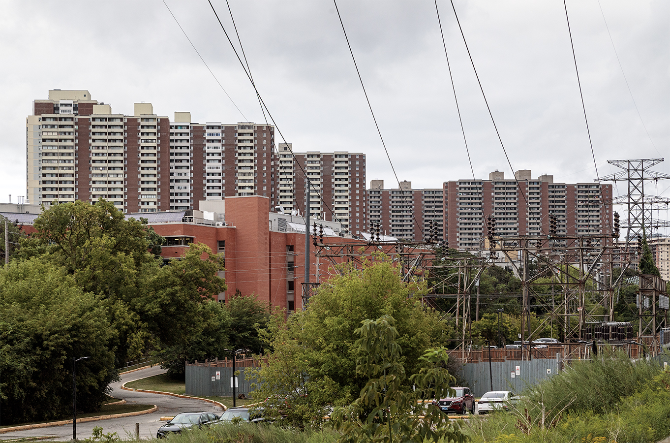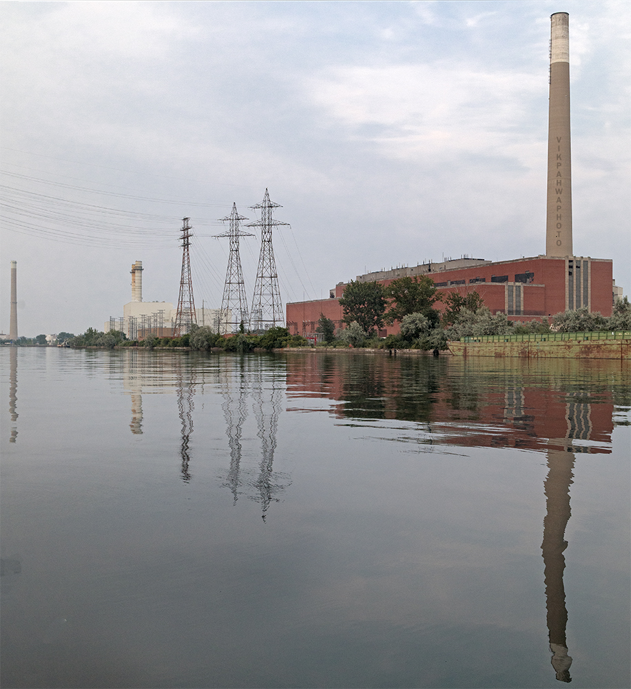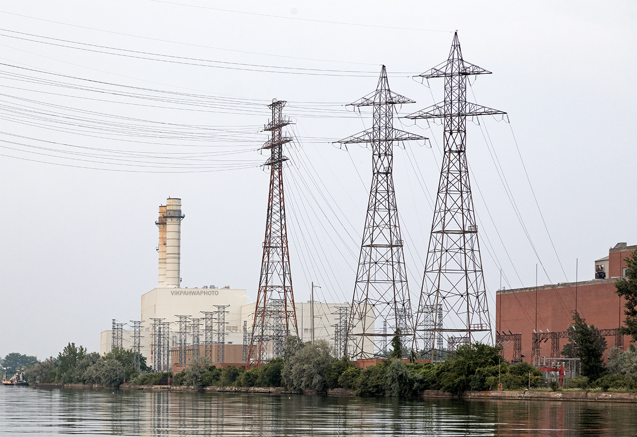 photos 20250806. The legacy of power generation on the shipping channel. The Hearn Generating Station (right) operated from 1951 to 1983. It’s transmission towers still stand today. Image August 7, 2025 Vik