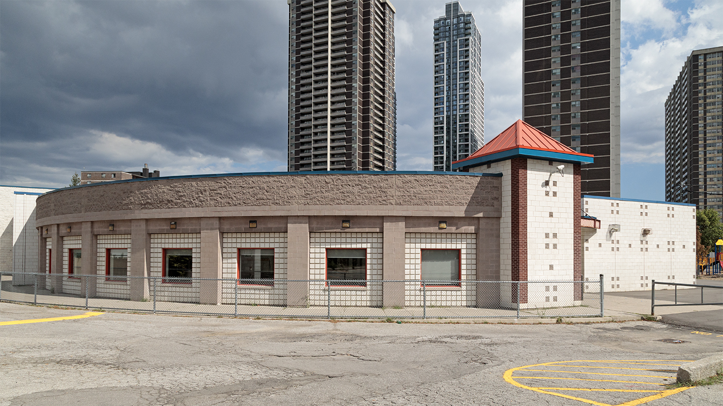 photos 20250826. Concrete, brick and some tile from probably the only intersection in Toronto with two brutalist schools. Image August 27, 2025 Vik