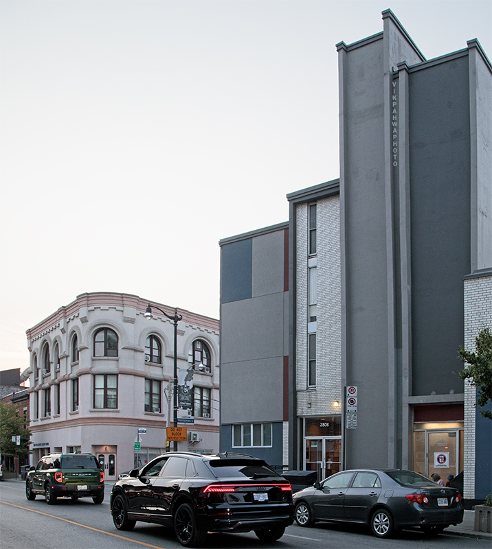 photos 20251103. Dundas and Heintzman is an interesting intersection with Kilburn Hall and Salvation Army’s Evangeline Residence at the corners. Image November 4, 2025 Vik